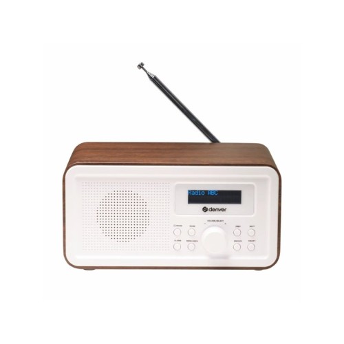 | Karakteristike | analogni radio prijem Teleskopska antena za bolji signal Mogućnost pamćenja stanica: do 10 DAB+ + 10 FM predizabranih stanica Ekran i kontrole LCD ekran sa pozadinskim osvetljenjem Prikaz vremena, naziva stanice i informacija o stanici Mono zvuk Regulacija jačine zvuka: elektronska, sa 20 nivoa Izlaz za slušalice: 3,5 mm priključak Ugrađeni sat i alarm Alarm može da se uključi sa radio signalom ili zvučnim buzzer-om funkcija ponovno odlaganje alarma Mrežno napajanje: 230 V Moguće i baterijsko napajanje: 4 × AA baterije (nisu uključene) Dimenzije: 20 × 10.5 × 12.5 cm Težina: 1.1 kg Drveno kućište elegantan i klasičan izgled |