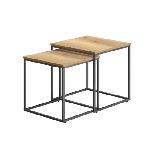| Karakteristike | Boja: hrast, crna Materijal: iverica, čelik Dimenzije većeg stola: 50 k 50 k 50,5 cm (širina k dubina k visina) Dimenzije manji sto: 45 k 45 k 45,5 cm (širina k dubina k visina) Ukupna težina proizvoda: 8,3 kg |