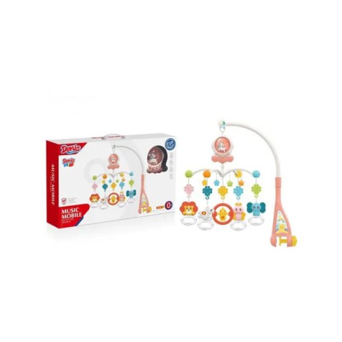 Muzička pokretna vrteška sa muzikom i svetlom pomaže da umirite i zaspite bebu uz pomoć pokreta vrteške, umirujuće muzike, zvukova i svetla. Pored puštanja muzike i svetla, vrteška je opremljena i zvečkama u obliku životinja: lava, slona, leptira, ovce i piletine, koje će podstaći vaše dete da istražuje i dodiruje. Pokretna vrteška raste sa vašom bebom, jer se može koristiti pričvršćena za krevetac ili samostalno. Podstiče razvoj sluha, razvoj fine motorike, razvoj vida, taktilni razvoj. Materijal: čvrsta ABS plastika.