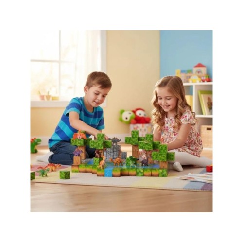 Set sadrži 142 magnetne kocke dimenzija 2,5 × 2,5 × 2,5 cm, što omogućava deci da kreiraju beskonačne konstrukcije – od jednostavnih kula do složenih 3D struktura. Ugrađeni magneti olakšavaju povezivanje delova, pružajući brzo i zadovoljavajuće iskustvo igranja. Ovo je odličan način za razvoj prostorne mašte, logičkog razmišljanja i motorike. Kocke su namenjene deci starijoj od 3 godine. Set takođe uključuje šablone sa gotovim konstrukcijama i figurice dinosaura.
