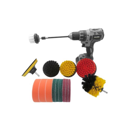 | Karakteristike | Brend ISKRA Adapter Šestougaoni (6 mm) Materijal PP+najlon Sadržaj seta Četke za čišćenje: mekana 50 mm, srednja tvrda 88 i 100 mm, tvrda 100 mm, kruta 100 mm / Jastučići za ribanje: 3 x mekani 100 mm, 3 x srednji 100 mm / Samolepljivi disk za poliranje 100 mm / Sunđer za poliranje: 3 x 100 mm / Produžetak 150 mm Ostale napomene Bušilica nije u sklopu seta