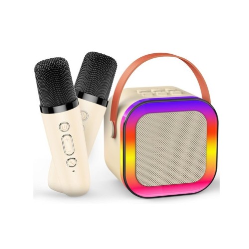 | Ostale karakteristike | Mini karaoke mašina sa elegantnim izgledom i jednostavnim rukovanjem za decu i odrasle sa 2 mikrofona. Bluetooth zvučnik je opremljen audio drajverom visokih performansi i naprednim digitalnim procesorom signala, koji čine zvuk jasnijim i izbegavaju sumove mikrofona. Ovaj karaoke sistem ima živopisne svetlosne efekte, pružajući predivno ambijentalno svetlo za vaše pevanje, dodajući poseban ukus vašoj zabavi. Trenutno uparivanje sa vašim mobilnim uređajima uz veliku stabilnost. Bežični mikrofon će se automatski povezati sa zvučnikom kada se uključi, na udaljenosti do 10m Podržava TF memorisan sa MP3 pesmama. Dugo vreme reprodukcije |