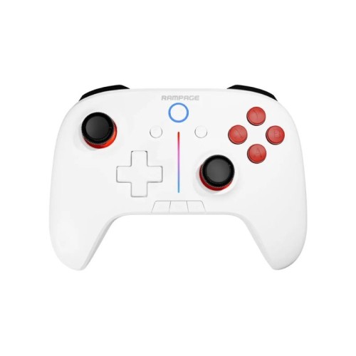 | Ostalo | Povezivanje: Bluetooth Vibracija: Da Autonomija baterije: do 15 sati Kompatibilnost: PC, Android RGB LED osvetljenje Vibracija 5 režima vibracije Stanica za punjenje Režimski tasteri Autonomija baterije: do 15 h Kapacitet baterije: 500mAh Port za punjenje: USB-C Vreme punjenja: 3 - 3.5 h Kompatibilnost: PC i Android Dužina kabla: 1.5 m Životni vek tastera: do 3 miliona pritisaka Funkcijski tasteri: FN + Joystick (Fare režim) Dužina kabla: 1.5m Dimenzije gejmpeda: 14.7 x 11.8 x 10 cm Dimenzije postolja: 15 x 10 x 7.5 cm Masa gejmpeda: 317 g Masa postolja: 250 g Boja: Bela Brend: Rampage |