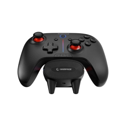 | Ostalo | Povezivanje: Bluetooth Vibracija: Da Autonomija baterije: do 15 sati Kompatibilnost: PC, Android RGB LED osvetljenje Vibracija 5 režima vibracije Stanica za punjenje Režimski tasteri Autonomija baterije: do 15 h Kapacitet baterije: 500mAh Port za punjenje: USB-C Vreme punjenja: 3 - 3.5 h Kompatibilnost: PC i Android Dužina kabla: 1.5 m Životni vek tastera: do 3 miliona pritisaka Funkcijski tasteri: FN + Joystick (Fare režim) Dužina kabla: 1.5m Dimenzije gejmpeda: 14.7 x 11.8 x 10 cm Dimenzije postolja: 15 x 10 x 7.5 cm Masa gejmpeda: 317 g Masa postolja: 250 g Boja: Crna Brend: Rampage |