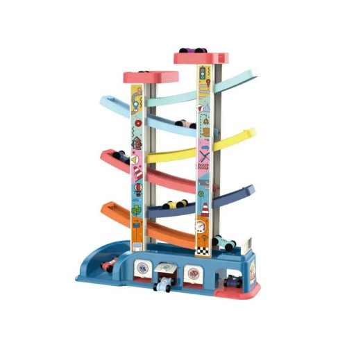 | Karakteristike | Ovaj šareni tobogan sa četiri staze i uključenim autićima pruža deci sate zabave i interaktivne igre. Deca mogu posmatrati kako autići silaze niz staze, razvijajući koordinaciju i razumevanje uzročno-posledičnih veza. Igračka je izrađena od čvrste plastike, sigurna je za decu i jednostavna za održavanje. |