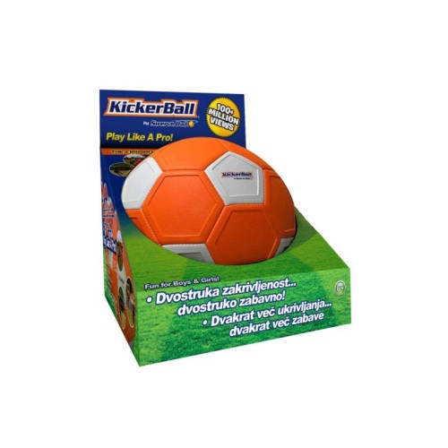 Karakteristike | Sa Kikerbolom možete skretati savijati i šutirati kao profesionalac.Ima posebne pnele koji usmeravaju vazduh na posebne načine, plus revolucionarne aerodinamičke materijale koji omogućavaju Kikerbolu da se lako savija i krivi. Postoje tri trik udarca. Skretanje-šutnite loptu sa leve strane da biste skrenuli udesno. Savijanje-Šutnite loptu sa desne strane da biste je savili ulevo. Savijanje-Udarite u centar koristeći desnu snagu udarca da biste je savili. Rezultati variraju u zavisnosti od vašeg nivoa veštine. Materijal:PVC-a i EVA pene. |