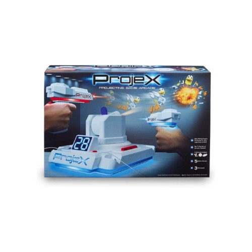Karakteristike | 3 različite slike mete: 1. patka; 2. Target; 3. NLO 5 Ugrađene igre; Nisu potrebni TV ekran ili senzori! Simulirani „laser“ za tačnost 6 hitaca; Drugi blaster za igre za 2 igrača; 3 izmenjiva slajda za različite mete i zvučne efekte Slike meta se projektuju na bilo koji zid svetle boje; Digitalni zvučni efekti i LED bodovanje 3 načina igranja: 1. Solo; 2. Jedan na jedan; 3. Timovi |
