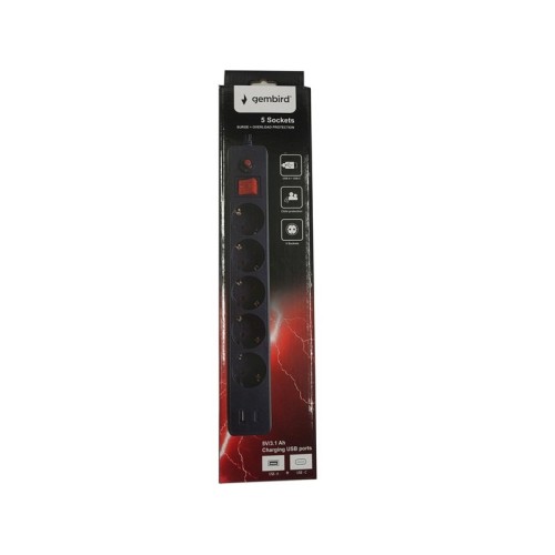 GEMBIRD SPG5-B-10(3G1.5)**produzni kabl sa zastitom i 5 uticnica, 5V/3.1A USB-A+C 16A/3500W 3m (765)