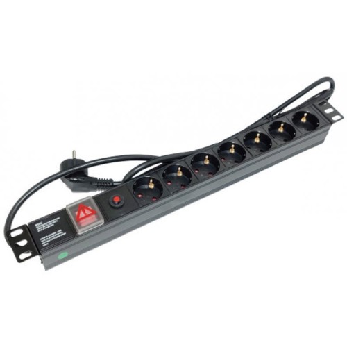 A4N Produžni kabl sa zaštitom 7 utičnica 16A, PDU 1U aluminium sa zaštitom 2m 251