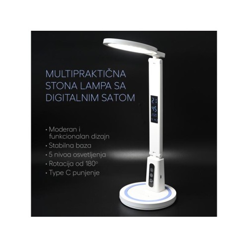 | Specifikacija | Moderna lampa idealna je za radne stolove i noćne ormariće Savitljiva u gornjem i donjem delu Moderan i funkcionalan dizajn Stabilna baza 5 nivoa osvetljenja |