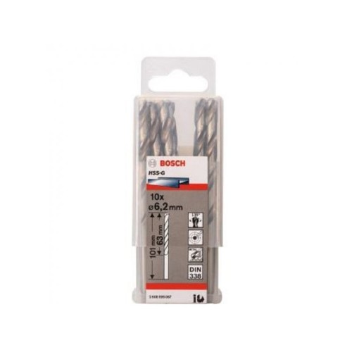 BOSCH Burgija za metal HSS-G, DIN 338 6,2 x 63 x 101 mm pakovanje od 10 komada
