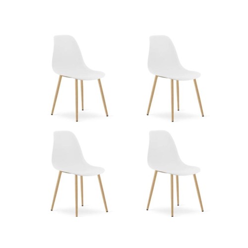 Bolzz Stolice WAT bele, nogare imitacija drveta, set od 4 komada