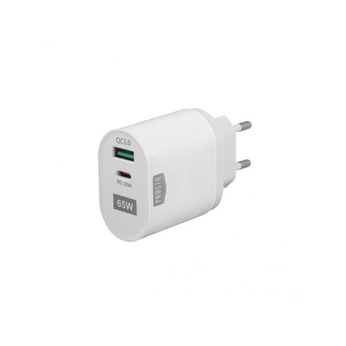 | Ostalo | Ulazni napon: 230 V~ / 50 Hz Izlazni napon: 5V DC/6.6 A; 9V DC/3 A; 12V DC/2.75 A; 20V DC/1.67 A Snaga: Maks. 65 W Priključci: 1 x USB utičnica (za brzo punjenje), 1 x USB-C PD utičnica Masa: 75 g Dimenzije: 85x48x30 mm Zaštita Od kratkog spoja, pregrevanja i preopterećenja |