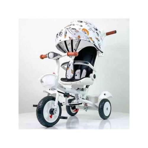| Karakteristike | Meko sedište Točkovi od pune gume Rotirajuće sedište Kočnice Ručica za guranje podesiva po dužini Tenda elastic Sigurnosni obruč |