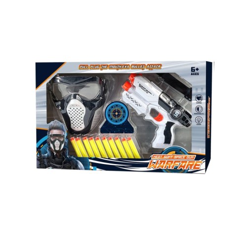 Set sadrži: masku, metu, blaster za ispaljivanje strelica, 10 strelica i kaiš.