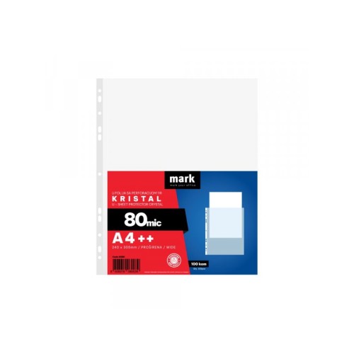 | Specifikacija | – U folija – u otvor, ubacivanje dokumenata sa gorenje strane – Format A4++: 240mmx305mm – Pogodna za sve vrste registratora (11 rupa) – Debljina: 80 mikrona – Kristal – sjajna folija – Anti-static – PVC Free – Dodatno ojačane ivice folije sprečavaju pucanje, cepanje, razdvajanje – Veliki kapacitet – u jednu foliju staje do 150 listova (u zavisnosti od debljine papira) – Pakovanje sadrži 100 folija |