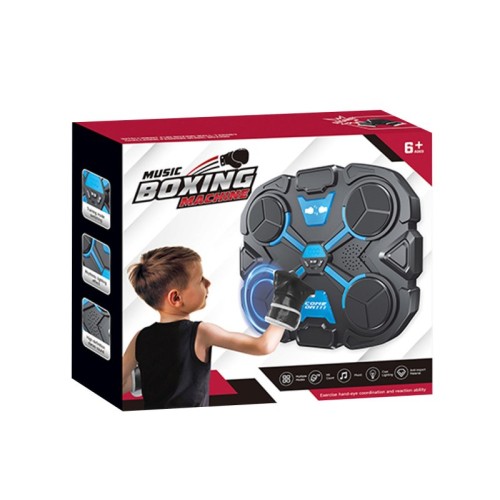 Karakteristike | Bokserski set sadrži dve rukavice za boks i metu sa svetlosnim i zvučnim efektima, kao i displejom za brojenje udaraca. Polja na meti se nasumično osvetljavaju, a dete pogađa upravo ona koja zasvetle, čime razvija koordinaciju ruku i brzinu reakcije.godina. Set uključuje baterije (3xAG13). Dimenzije pakovanja:33,5x29x8,9cm. |