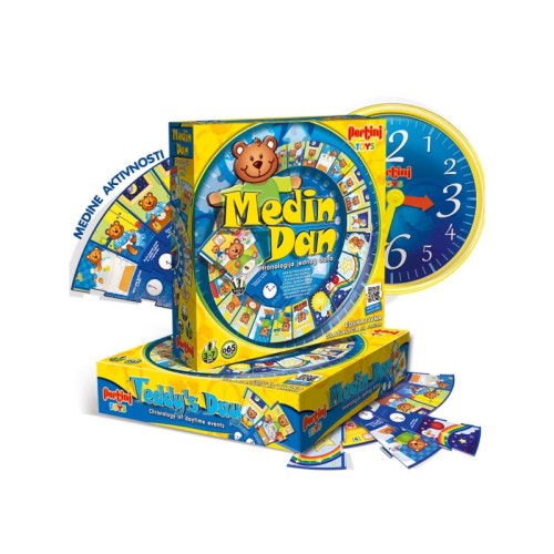 | Karakteristike | Na kutiji se nalazi QR kod, čijim skeniranjem deca mogu da poslušaju audio priču o Medinom danu, a zatim da, vođeni pričom, slože slagalicu i prate Medine aktivnosti od jutra do večeri. Igra sadrži: 24 ilustrovana dela slagalice, sat sa kazaljkama. Dimenzije pakovanja: 30 x 6.5 x 30 cm. |