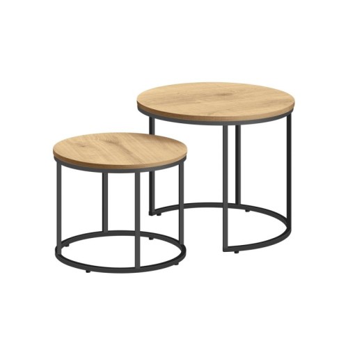 Bolzz Okrugli sto za kafu, 2 komada - hrast / crne nogare
