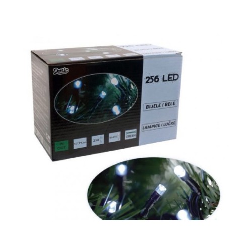 | Karakteristike | 256 LED lampica na razmaku od 5 cm, na zelenoj žici. 24 V, 8 funkcija. Belo svetlo. Ukupna dužina kabla iznosi 17,75 m, deo s lampicama 12,75 m. Dužina kabla od utikača do lampica iznosi 5 m. Za spoljašnju i unutrašnju upotrebu. |