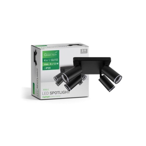 GREENTECH LED spot svetiljka 4x GU10 crna (NYXA-4)
