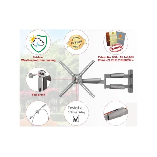 | Karakteristike | Montiranje VESA 100mm x 100mm, VESA 200mm x 200mm, VESA 75mm x 75mm, VESA 400mm x 400mm, VESA 400mm x 200mm, VESA 300mm x 300mm, VESA 200mm x 100mm, VESA 400mm x 300mm, VESA 100mm x 200mm, VESA 300mm x 400mm, VESA 300mm x 200mm, VESA 200mm x 300mm Podržane dijagonale 13 inča - 65 inča Nosivost 36kg Dodatne mogućnosti: Swivel, Pivot, Rotiranje Uglovi pomeranja: Tilt -5 stepeni +15 stepeni, Swivel ± 90 stepeni, Rotacija ekrana 360 stepeni Mogućnost montiranja zakrivljenih televizora |